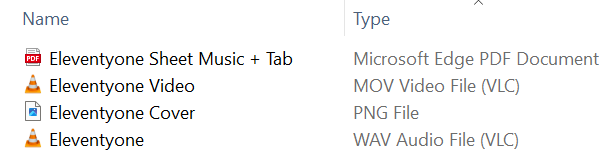 Zip file containing Tabs/Sheet Music (12 pages full score), Video performance (MOV), Audio (WAV file) and cover art.